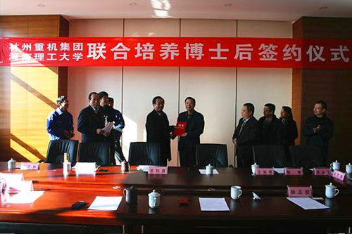 董事長郭現生發表講話,在講話中對遠到而來的河南理工大學的各位領導首先表示了熱烈歡迎,他回顧了河南理工大學與林州重機的長久合作關系,表示一定會深化合作,協助做好博士后的培養工作。同時,強調人才和技術是企業增強核心競爭力的關鍵。今后公司博士后研發基地要采取多種措施努力引進人才,吸納更多人才進站,促進公司后備人才的培養。